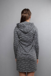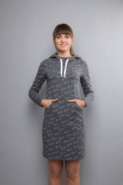 Длина изделия: 87 см Длина рукава: 61 см Платье полуприлегающего силуэта с капюшоном. Длинный рукав. Отделка по рукавам. Накладной карман.