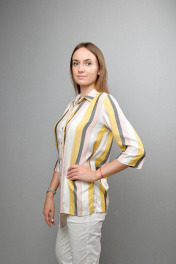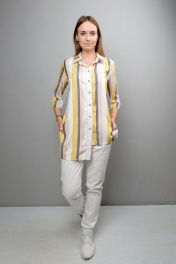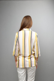 Блуза прямого силуэта с ассиметричным низом и пуговицами Mita ЖМ1037 желто-серо-розовая_полоска
