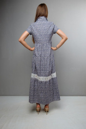 Платье летнее с воланами, отрезное по линии талии, двухцветное Mita ЖМ1047 цветы