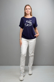Блуза из вискозы и трикотажа с принтом и спущенным рукавом Mita ЖМ1097 синий