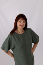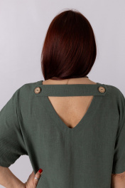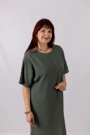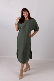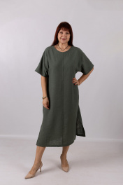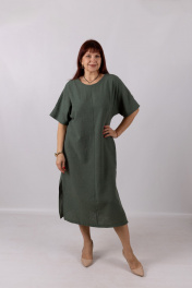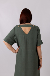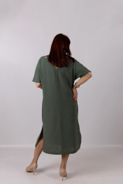 Платье А-образного силуэта. Спущенный рукав. По спинке V – образный вырез. Декоративные паты. Длина изделия: 130 см.