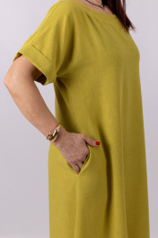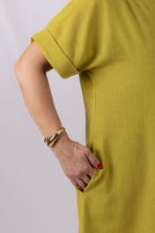 Платье А-образного силуэта. Спущенный рукав с отложной манжетой. Карманы в боковых швах. Длина изделия: 130 см.