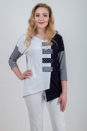 Круглогодичная туника из вискозы и трикотажа с декоративными деталями Mita ЖМ882 т.синий+белый