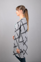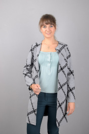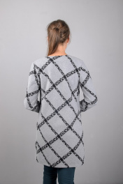 Круглогодичный серый удлиненный жакет прямого силуэта Mita ЖМ927 серый+клетка
