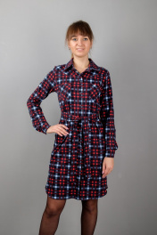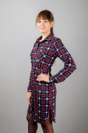 Платье-рубашка с фигурным низом и застежкой на кнопках Mita ЖМ941а синий/клетка
