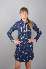 туника А-образного силуэта с декоративной шнуровкой Mita ЖМ951 синий/буквы