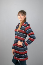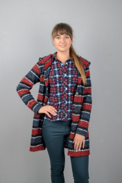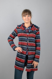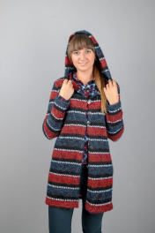 Круглогодичный кардиган на пуговицах с капюшоном из вязки Mita ЖМ964 красный