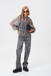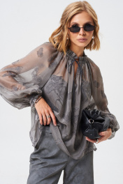Блуза из летящей легкой ткани. Ткань с Crush-эффектом и с дизайнерским принтом с использованием печати "Флок". Длина блузы 62 см Длина рукава от воротника 73 см. ОГ 42-44 р-р - 132 см, 46-48 р-р - 140 см, 50-52 р-р - 148 см.