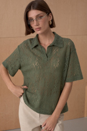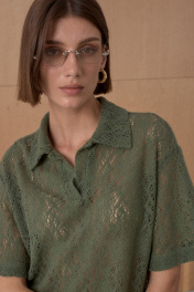 Поло из трикотажного пушистого кружевного полотна. Длина поло 67 см.