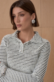 Тренд сезона! Поло из приятного мягкого трикотажного полотна. Поло имеет пушистую фактуру. Длина от плечевой точки у основая шеи 66 см. Состав 51% нейлон, 45% вискоза, 4% спандекс.