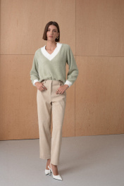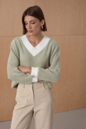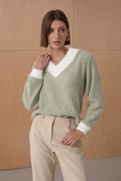Тренд сезона! Джемпер из приятного мягкого трикотажного полотна. Джемпер имеет пушистую фактуру. Усиленная и расширеная линия плеча. Длина от плечевой точки у основая шеи 58 см. Состав 51% нейлон, 45% вискоза, 4% спандекс.