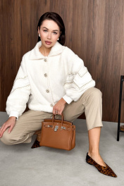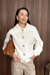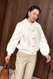 Джемпер в актульном крое в стиле олимпийки из приятного пушистого полотна. НЕ КОЛЕТСЯ. Застежка на премиальные дизайнерские пуговицы. Рукава декорированы тесьмами. Низ на резинке. Джемпер на подкладке. Длина джемпера 63 см, длина рукава от воротника 70 см. ОГ 42-44 р-р 124-126 см, 46-48 р-р 132-134 см. Состав 100% ПЭ