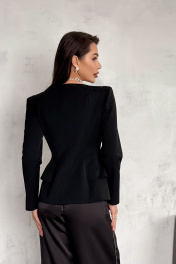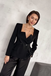 Жакет из плотной формообразующей ткани. Жакет с красивыми линиями силуэта. Усиленная линия плеча. Длина жакета 64 см, длина рукава от воротника 70 см. ОГ 42р-р 85-87 см, 44 р-р 89-91 см, 46 р-р 93-95 см, 48 р-р 97-99 см. ОТ 42 р-р 73-75 см, 44 р-р 77-79 см, 46 р-р 81-83 см, 48 р-р 85-87 см. Состав ПЭ 80%, вискоза 18%, спандекс 2%