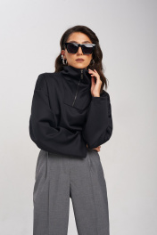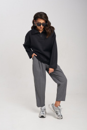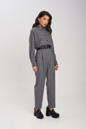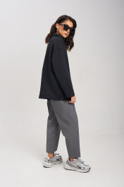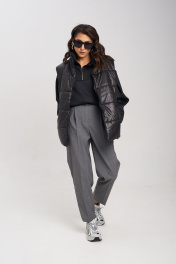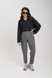 Брюки из костюмной ткани. Свободный крой со складками по переду. Пояс брюк - стабильный со шлевками. Длина брюк 103-106 см.