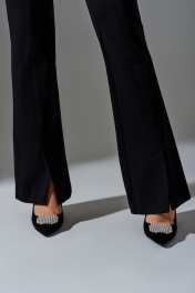 Ноги от ушей! Это возможно только с нашим костюмом. Классические брюки, расклешённые от колена из приятного трикотажного полотна. Эффект нескончаемых ног дают шлицы по низу брюк. Жакет однобортный. Воротник с лацканами. Такой костюм подойдет как для элегантного праздничного вечера, так и для работы в офисе, так и для повседневной носки. Длина жакета 75 см. Длина брюк 109 см