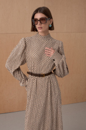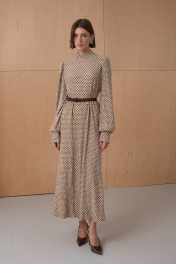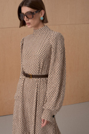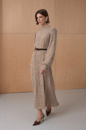 Платье из бархатистой тактильно приятной ткани с эфектом крэш. РЕМЕНЬ В КОМПЛЕКТЕ. Длина от плечевой точки у основая шеи 137 см. Состав 73% ПЭ, 21% вискоза, 6% спандекс