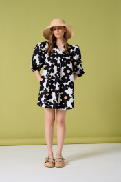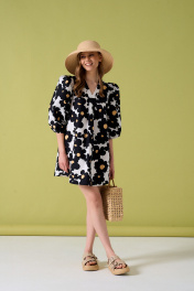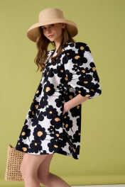 Платье из хлопковой ткани А-силуэта. В боковых швах карманы. Длина платья 85 см, длина рукава от воротника 62 см. ОГ 42-44 р-р 97-99 см, 46-48 р-р 101-103 см. Состав 100% хлопок.