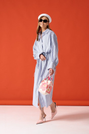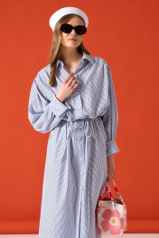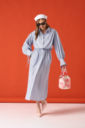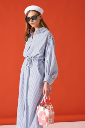 Платье - рубашка из хлопковой ткани. Объёмные рукава с акцентной манжетой на завязках (их можно подвернуть). Съёмный пояс. Длина платья 138 см, длина рукава от воротника с отвернутыми манжетами 76 см. 42-44 р-р ОГ 117-119 см, ОТ 117-119 см, ОБ 117-119 см. 46-48 р-р ОГ 121-123 см, ОТ 121-123 см, ОБ 121-123 см. Состав 100% хлопок
