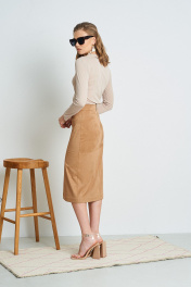 Юбка из актуальной замши цвета кемэл. Длина юбки 75 см. Состав ПУ 52%, ПЭ 48%