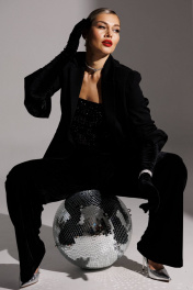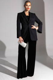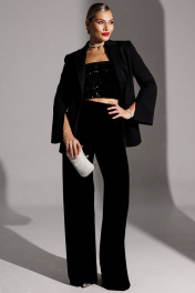 В предпраздничной суете так важно чувствовать себя комфортно, не жертвуя шиком. Наши велюровые брюки созданы именно для этого. Их струящийся силуэт и мягкий, глубокий черный цвет добавляют образу лоска, а тактильное наслаждение от ткани останется с Вами на весь вечер. Брюки с высокой посадкой, с притачным поясом на резинке, без боковых швов, слегка расширенные к низу. Наденьте наш бархатный жакет с велюровыми брюками - и Вы получите ансамбль тотальной гармонии. Дополните образ топом из пайеток - образ получается смелым. Легкая небрежность велюра и безупречная линия костюмного жакета создают тот самый сплав комфорта и стиля. Создайте безупречный новогодний гардероб вокруг наших велюровых брюк. длина брюк по боковому шву: 112 см