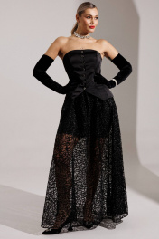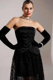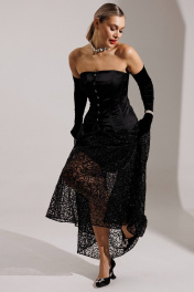 Хотите образ, который соберет все восторженные взгляды? Не ищите дальше! Встречайте главную героиню новогодней ночи! Юбка, которая состоит из двух слоев: нижняя часть зауженная мини, а верхняя — длинная, пышная. Верхний слой выполнен из черной сетки, расшитой декоративной тесьмой. Притачной пояс и молния сзади завершают образ. Вы выглядите безупречно и чувствуете себя уверенно в любом движении! Завершите образ с помощью корсета из нашей новогодней коллекции. В дуэте они раскрываются на все 100%: баланс пышности низа и собранного верха. Ваш готовый билет на самый стильный Новый год! длина юбки по боковому шву: 45/99 см