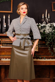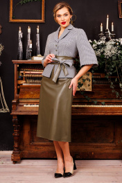 Демисезонный двухпредметный костюм жакет и юбка из жаккарда Мода Юрс 2618 хаки