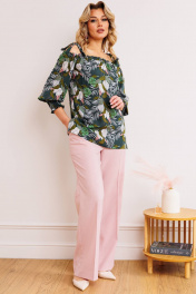 Блуза, брюки Мода Юрс 2748 зеленый+розовый