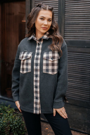 Рубашка оверсайз из трикотажа с манжетами Мода Юрс 2772 серый_клетка