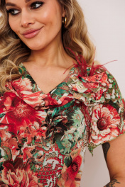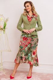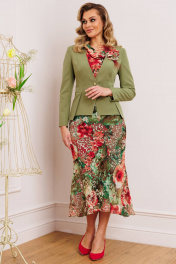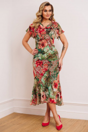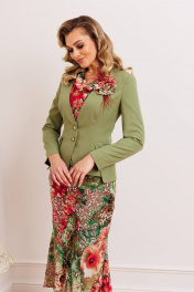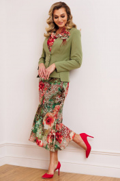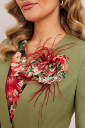 Платье из шифона и текстиля с съемным жакетом и декоративным цветком Мода Юрс 2823 олива