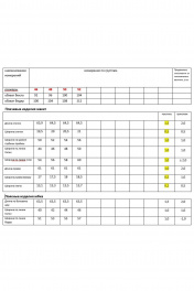 Комплект женский, двухпредметный, состоящий из жакета и юбки. Жакет полуприлегающего силуэта. На полочках расположены нагрудные и талиевые вытачки. Спинка со средним швом и талиевыми вытачками. Верхняя часть переда и спинки выполнена с отрезными кокетками. Рукав втачной двухшовный. Юбка прямая, зауженная к низу, сверху на притачном поясе, по бокам с резинками. Спереди юбка со шлицей, сзади застежка на тесьму-молнию в среднем шве. Костюм на подкладке. длина спинки: 64 см длина рукава: 61 см длина юбки: 69 см