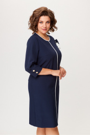 Платье прямого силуэта с украшением из текстильных цветов Moda Versal П2485 т.синий
