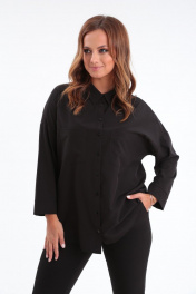 Стильная рубашка свободного кроя с центральной планкой на застежку пуговицы по полочке, с накладным карманом на левой полочке. Плечо изделия спущено. Рукав 7/8 прямой с широкой манжетой. Воротник со стойкой. Спинка изделия цельная, по центру от горловины застрочена встречная складка. Низ изделия фигурный отстрочен отделочной строчкой. Замеры изделия в готовом виде: Размеры 48-50-52 Длина по спинке: 71см Длина рукава: 37см Ширина по линии груди: 124-128-132см Ширина по линии низа: 124-128-132см Размеры 54-56-58 Длина по спинке: 77cм Длина рукава: 38см Ширина по линии груди: 136-140-144см Ширина по линии низа: 136-140-144см
