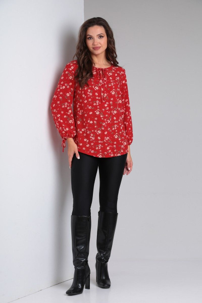 Красная свободная блузка с пуговицами и отгибом Modema м.739/1