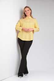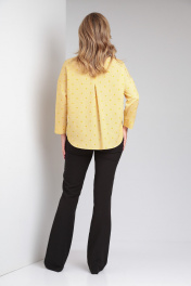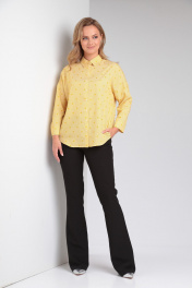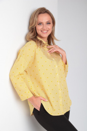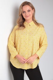 Стильная рубашка свободного кроя с центральной планкой на застежку пуговицы по полочке, с накладным карманом на левой полочке. Плечо изделия спущено. Рукав 7/8 прямой с широкой манжетой. Воротник со стойкой. Спинка изделия цельная, по центру от горловины застрочена встречная складка. Низ изделия фигурный отстрочен отделочной строчкой.