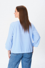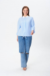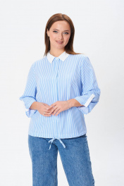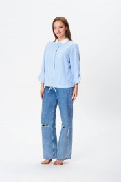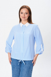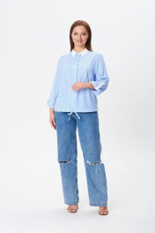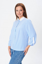 Женская рубашка свободного кроя с втачным рукавом и рубашечным воротником. Рукав изделия, длинной 7/8 с манжетой, закрепленный патой на пуговицу. Перед изделия с нагрудными вытачками и супатной застежкой на петли пуговицы. Спинка блузки цельная. По низу изделия кулиса со шнуром для регулирования ширины.