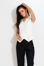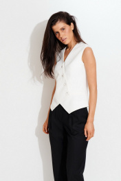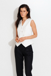 Брюки из костюмной ткани классического силуэта зауженные к низу полной длины с заутюженными стрелками. По передней половинке по две складки от талии,наклонные карманы к боковым,сзади талиевые вытачки. Верх брюк обработан притачным поясом со шлевками под ремень,застежка на молнию с гульфиком.