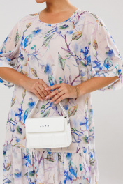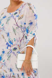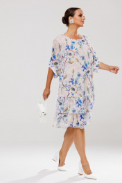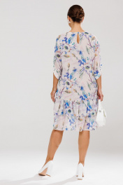 Платье женское прямого силуэта, выполненное из шифона (не тянется), на эластичной подкладке. Подкладка соединена с платьем. Перед и спинка платья цельные. По низу платья – два ряда присборенных воланов. Горловина округлой формы, обработана окантовкой, по спинке обработана застежка-капелька на навесную петлю-пуговицу. Рукав втачной, длиной ¾ с фигурным присборенным низом и с притачной манжетой. Манжета рукава декорирована отделочной пуговкой. Длина платья по среднему шву спинки – р50,52,54 – 100, р56,58,60 – 102 Длина рукава во всех р-ах – 30 Ширина рукава на уровне глубины проймы ½ - р50-20,5, р52-21, р54-21,5, р56-23, р58-23,5, р60-24 Ширина рукава внизу ½ - р50-19,5, р52-20, р54-20,5, р56-21, р58-21,5, р60-22 ОГ ½ - р50-60, р52-62, р54-64, р56-66, р58-68, р60-70 ОТ ½ - р50-58, р52-60, р54-62, р56-64, р58-66, р60-68 ОБ ½ - р50-61, р52-63, р54-65, р56-67, р58-69, р60-71