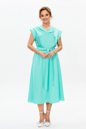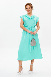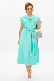 Платье нарядное из атласа с драпировкой и поясом Mubliz 184 голубой
