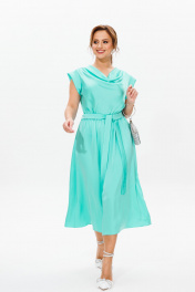 Нарядное женское платье, выполнено из легкого струящегося атласа (тянется). Платье отрезное по линии талии, присборенное резинкой. Верхняя часть платья прямого силуэта. Горловина переда оформлена драпировкой «качели», горловина спинки обработана окантовкой. Рукава в платье в виде притачной манжеты. Нижняя часть платья – покроя полусолнце. В комплект входит пояс из основной ткани. Длина платья по среднему шву спинки во всех р-ах – 118 Длина рукава во всех р-ах – 7 ОГ ½ - р48-54, р50-56, р52-58 ОТ ½ - р48-52, р50-54, р52-56 ОБ ½ - р48-60, р50-62, р52-64