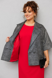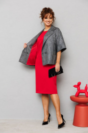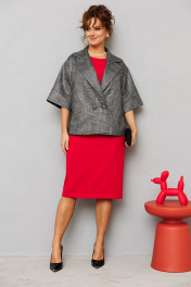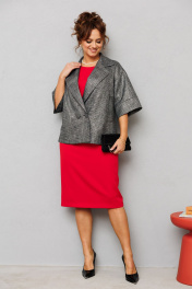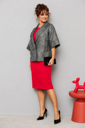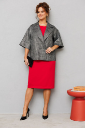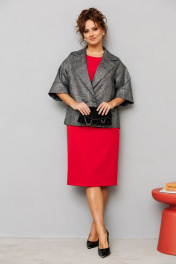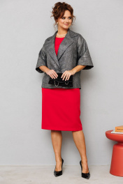 Нарядный комплект жакет и платье с пайетками и разрезом Mubliz 228 красный-серый
