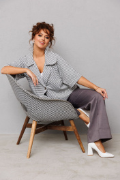 Каменецкая Мария Геннадьевна16 января 2025Костюм великолепно смотрится. Жакет элегантный, брюки модной ширины, крой хороший. Немного тонковата ткань для брюк. Соответствует размеру (ношу 54 р.) Спасибо производителю и продавцу.- Ramonki17 января 2025Здравствуйте, Мария. Этот костюм покорил уже много сердец наших покупательниц. В таком образе, к уверенности в себе можно смело добавлять 100%. Ваши Ramonki 💙