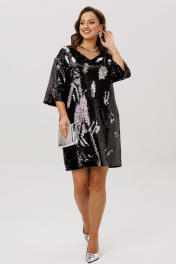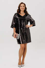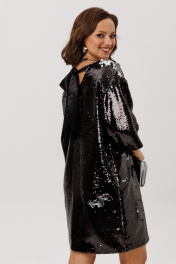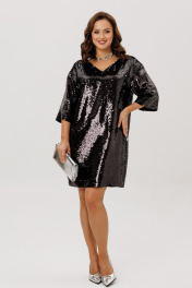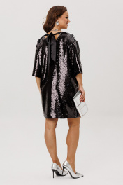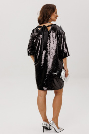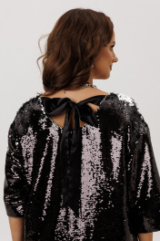 Нарядное женское платье свободного силуэта со спущенной линией плеча, выполнено из плательной ткани с пайетками (не тянется). Перед и спинка – цельные. Горловина по переду V-образной формы, по спинке – округлой формы, в вырез которой вставлен декоративный бант из шифона. Рукава втачные, одношовные. Платье на подкладке. РАЗМЕРЫ 44 46 48 50 52 54 РОСТ 164 ОБХВАТ БЮСТА 88 92 96 100 104 108 ОБХВАТ БЕДЕР 96 100 104 108 112 116 Длина спинки 94 94 94 95 95 95 Ширина спинки 48 48 48 51 51 51 ОГ (1/2) 50 54 56 58 60 62 ОТ (1/2) 51 53 55 57 59 61 ОБ (1/2) 54 56 58 60 62 64 длина рукава 30 30 30 30 30 30 ширина рукава на уровне глубины проймы (1/2) 22 22,5 23 23,5 24 24,5 ширина рукава внизу (1/2) 20 20,5 21 21,5 22 22,5