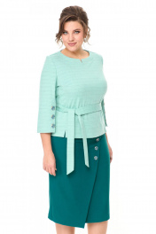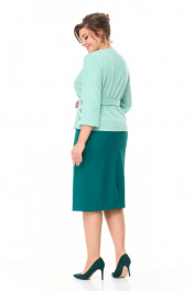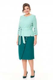 Комплект 2х предметный. Блуза полуприлегающего силуэта с рельефами по полочке и нагрудными вытачками, горловина с отрезной фигурной бейкой, спинка со средним швом.Рукав втачной 2х шовный со шлицей по переднему шву. Юбка прямого силуэта с отлетной пелериной по переду. Длина рукава: 53 см. Длина изделия: юбка 70см, блуза 57 см.