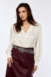 Блузка женская, прямого силуэта из легкой атласной ткани, с V-образным вырезом. Рукав свободный, со сборкой по окату, внизу рукава — манжет с застёжкой на пуговицу. Блузка станет идеальным выбором для работы в офисе, а также подойдет для торжественных и праздничных мероприятий. Данная модель станет отличным дополнением Вашего гардероба. Блузка идеально сочетается с кожаной юбкой из осенне-зимней коллекции. Длина блузки от высшей точки плечевого шва до низа 66 см (р.42-48), 68 см (р.50-62). Длина рукава от горловины с плечом и манжетой 76 см (р.42-48), 78 см (р.50-62).