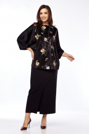 Блузка женская из атласа, вставка по переду из отделочной ткани в пайетки. Блузка прямого силуэта для торжественных мероприятий. Можно носить как в заправленном виде, так и на выпуск. По спинке идет разрез с застежкой на навесную петельку и пуговицу. Рукав длиной 3\4, низ рукава со складками на обтачке. Горловина обработана обтачкой. Отличный вариант для тех, кто выбирает всегда выглядеть шикарно. Блузка станет замечательным выбором для вечернего образа, который будет очаровывать всех своей изысканностью. Данная модель станет отличным дополнением Вашего гардероба. Длина блузки от высшей точки плечевого шва до низа 68 см (р.42-48), 73 см (р.50-62). Длина рукава от горловины с плечом 59 см (р.42-48), 68 см (р.50-62). Ширина рукава по низу 20 см.