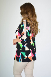 Вискозная блузка с эффектным принтом — проверенный рецепт удачного образа, привлекающего внимание. Если повседневная элегантность – ваш любимый стиль, то наша блузка свободного кроя станет вашим любимым нарядом на разные случаи жизни. Перед блузки цельный, по горловине нашита декоративная металлическая пластинка. Спинка цельная. Низ изделия прямой, с разрезами по боковому шву. Рукава рубашечного типа двушовные, длиной 3/4, в верхний срез рукава и плеча вставлена декоративная кружевная тесьма, низ рукава с манжетой. Y-образный вырез горловины обработан обтачкой по переду и окантовкой по спинке. Блузка с кружевом – это выразительное творение, не требующее множества аксессуаров, чтобы выглядеть великолепно. Надевая её, вы можете быть уверены в женственном образе в любое время.