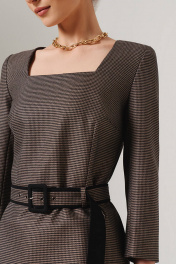 Блузка полуприталенного силуэта от бренда NELVA станет ярким и стильным акцентом в вашем гардеробе. Блузка выполнена из принтованного костюмного полотна «Пье-де-пуль». Эта блузка - идеальный выбор для тех, кто ценит индивидуальность: она прекрасно дополнит монохромные комплекты с классическими брюками или юбкой-карандаш, а также станет выразительным центром образа в паре с джинсами. Необычный квадратный вырез горловины придает блузке уникальность. Дополняется изделие поясом из основного полотна с пряжкой и люверсами. Качественные материалы и продуманный крой делают эту модель универсальной вещью, которая подарит вам ощущение уютной уверенности и стиля в любой ситуации. С любовью и заботой о Вас, команда бренда NELVA!