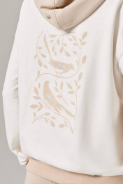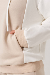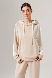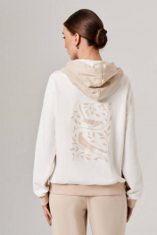 Джемпер женский от бренда NELVA - это идеальный выбор для женщин, ценящих комфорт и стиль. Данная модель выполнена из трикотажного двухцветного полотна на основе хлопка, что обеспечивет комфорт, практичность и долговечность. Худи имеет свободный силуэт и воротник-стойку на запáх с капюшоном, на кулиске со шнурками-завязками и металлическими наконечниками. Спущенная линия плеча придает модели непринужденность и расслабленность. Рукава и низ джемпера сосборены на рибану. В боковых швах выполнены потайные карманы. Особенностью модели является выполненный на спинке дизайнерский принт с шиммером. Джемпер не стесняет движения, одновременно скрывает недостатки и подчеркивает достоинства фигуры. Вы будете чувствовать себя комфортно в течение всего дня. С любовью и зоботой о Вас, команда бренда NELVA!