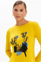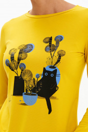 Тёплый и пряный оттенок карри делает этот лонгслив с забавным принтом невероятно стильным и атмосферным. Насыщенный цвет идеально подходит для золотой осени, создавая яркий и позитивный акцент в образе. Принт с задумчивым котом в окружении тропических листьев добавляет нотку игривости и эклектики. Свободный крой обеспечивает максимальный комфорт, делая его идеальным для активного дня в городе или неспешного отдыха на выходных. Этот лонгслив заряжает оптимизмом и прекрасно комбинируется с базовыми вещами нейтральных оттенков, позволяя рисунку раскрыться во всей своей красоте. С любовью и заботой о Вас, команда брендов NELVA и FRIDAY by NELVA!
