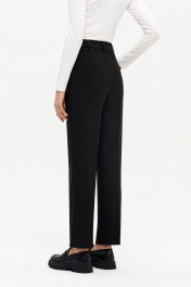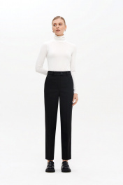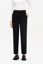 Брюки изготовлены из полиэстера с добавлением вискозы и эластана. Данная модель обеспечивают комфорт и практичность в носке. Качественный материал не мнется и не деформируется, гарантирует долгое использование. Удобство кроя, качество швов, состав материала, фасон – наши брюки полностью соответствуют всем этим качествам. Они предлагают ряд изысканных деталей, делающих их неповторимыми. Притачной пояс со шлевками, собранный по бокам на эластичную резинку, добавляет аккуратности и позволяет подобрать оптимальную посадку. Застежка на молнию обеспечивает удобство надевания и снимания брюк, а также обеспечивает надежную фиксацию. Спереди нашли свое место косые боковые карманы, добавляющие функциональность и придающие образу гармоничный облик. Особенно интересной деталью являются стрелки, которые придают брюкам изысканность. Они начинаются в шве пояса и переходят в нижнюю часть брюк, подчеркивая вертикальную линию и создавая визуальное удлинение фигуры. Модель представлена с посадкой выше средней на резинке, что позволяет скрыть небольшие недостатки фигуры. Удачная конструкция брюк, слегка зауженных к низу, идеально подходит также и на большие размеры